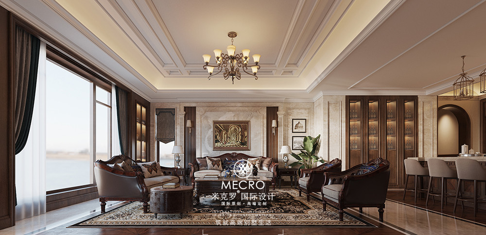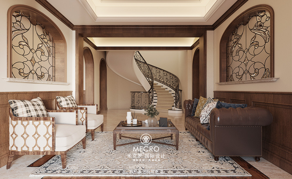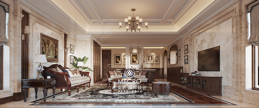 古典美式风格设计,宛如一场时光回溯之旅。空间布局上,追求开阔大气,以中轴线对称彰显稳重,客厅、餐厅连贯流畅,尽显豪迈。色彩选取醇厚温暖的大地色系,如深棕、米黄,奠定沉稳格调。家具方面,厚重实木雕花沙发、古朴茶几,雕刻精细,诉说历史韵味;搭配华丽水晶吊灯,光影交错。