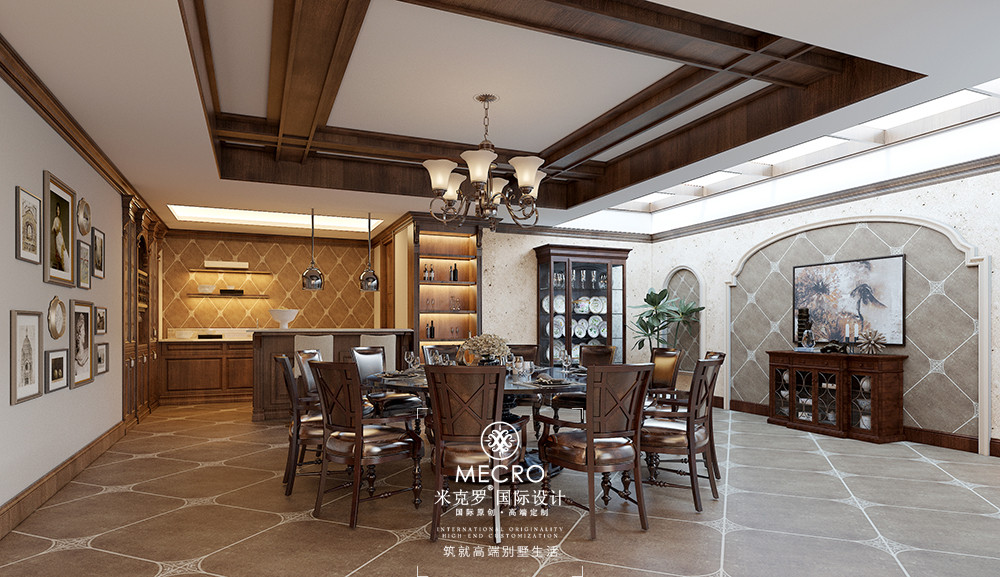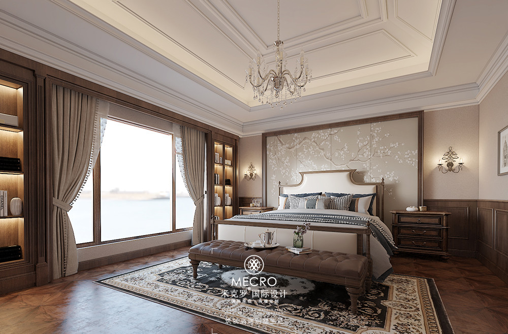 墙面常以实木护墙板、复古壁纸装饰,再挂几幅经典油画,浓郁艺术气息扑面而来,于细节处尽显古典美式的奢华与典雅,让人沉浸其中。