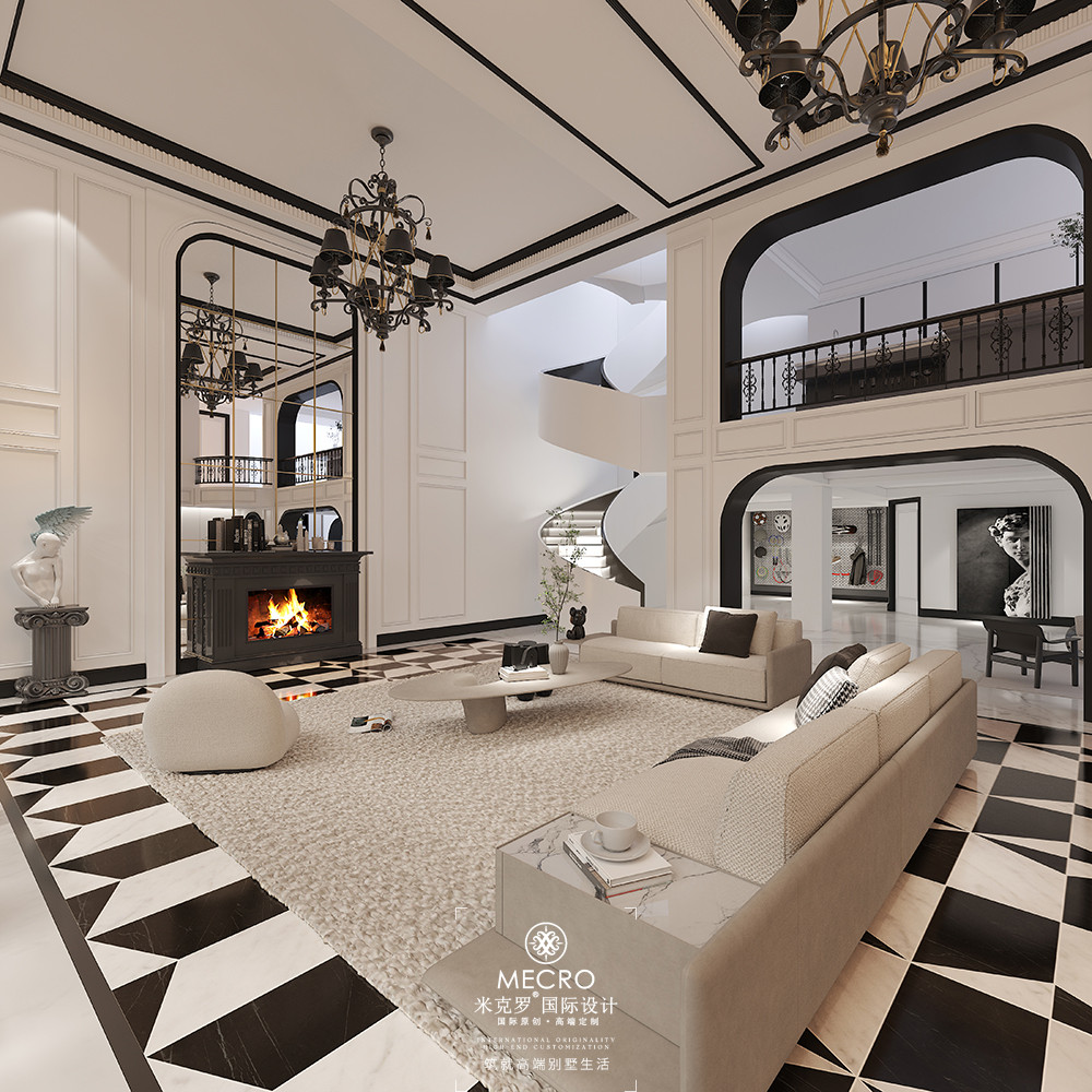 铜雀台 | 600平米黑白法式风格别墅装修效果图